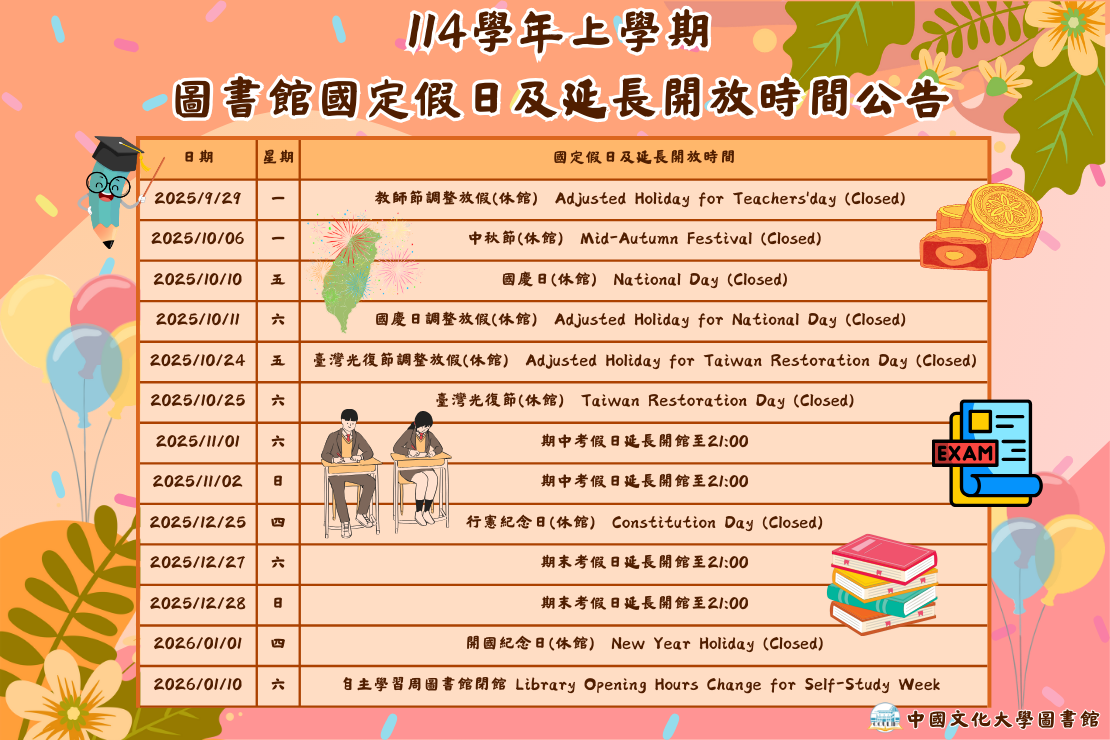 圖書館詳細開館情形請參閱本館「