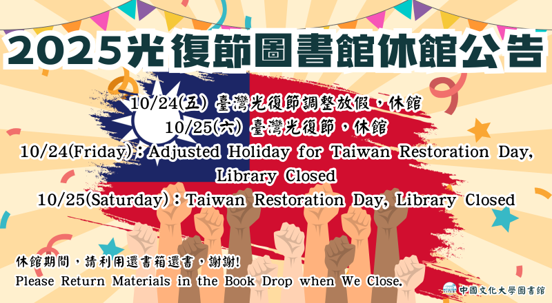 [公告] 2025光復節10/24-25圖書館休館