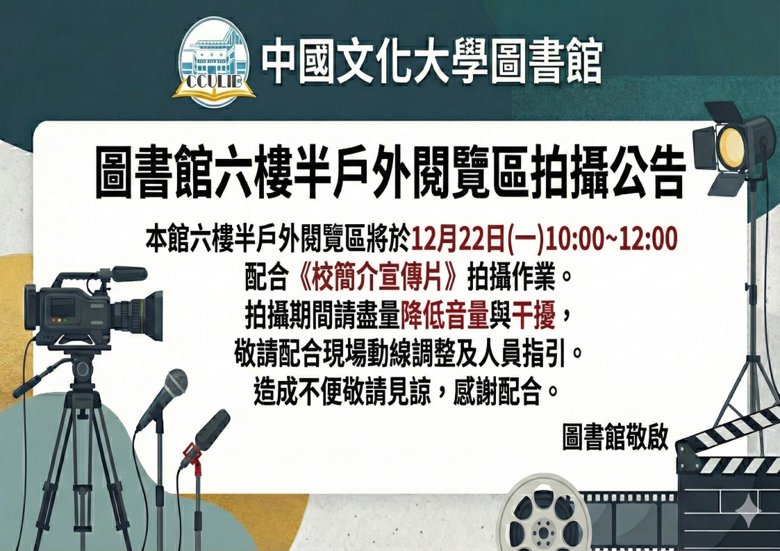 [公告] 圖書館六樓半戶外閱覽區拍攝公告