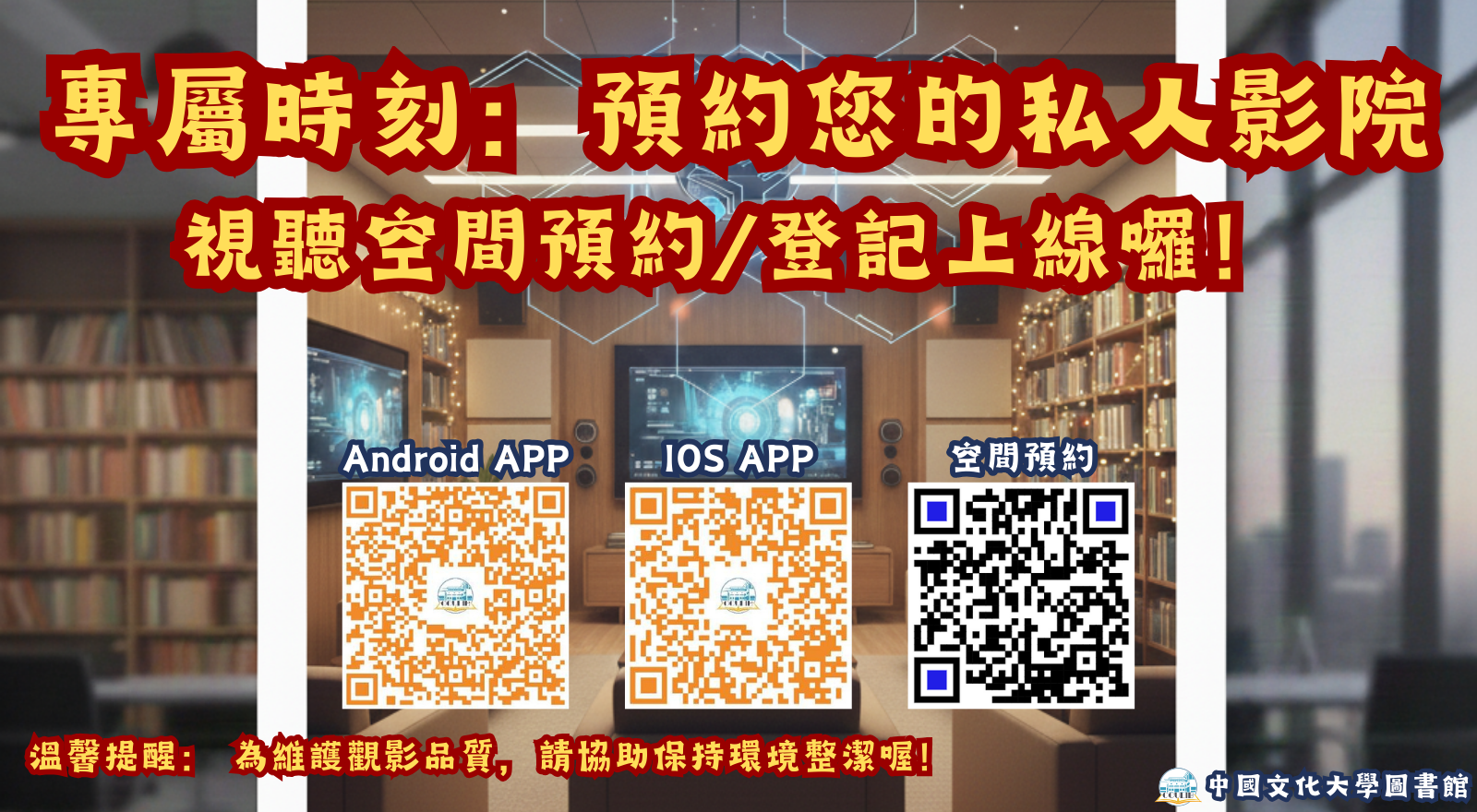 [公告] 視聽室空間預約開放線上登記