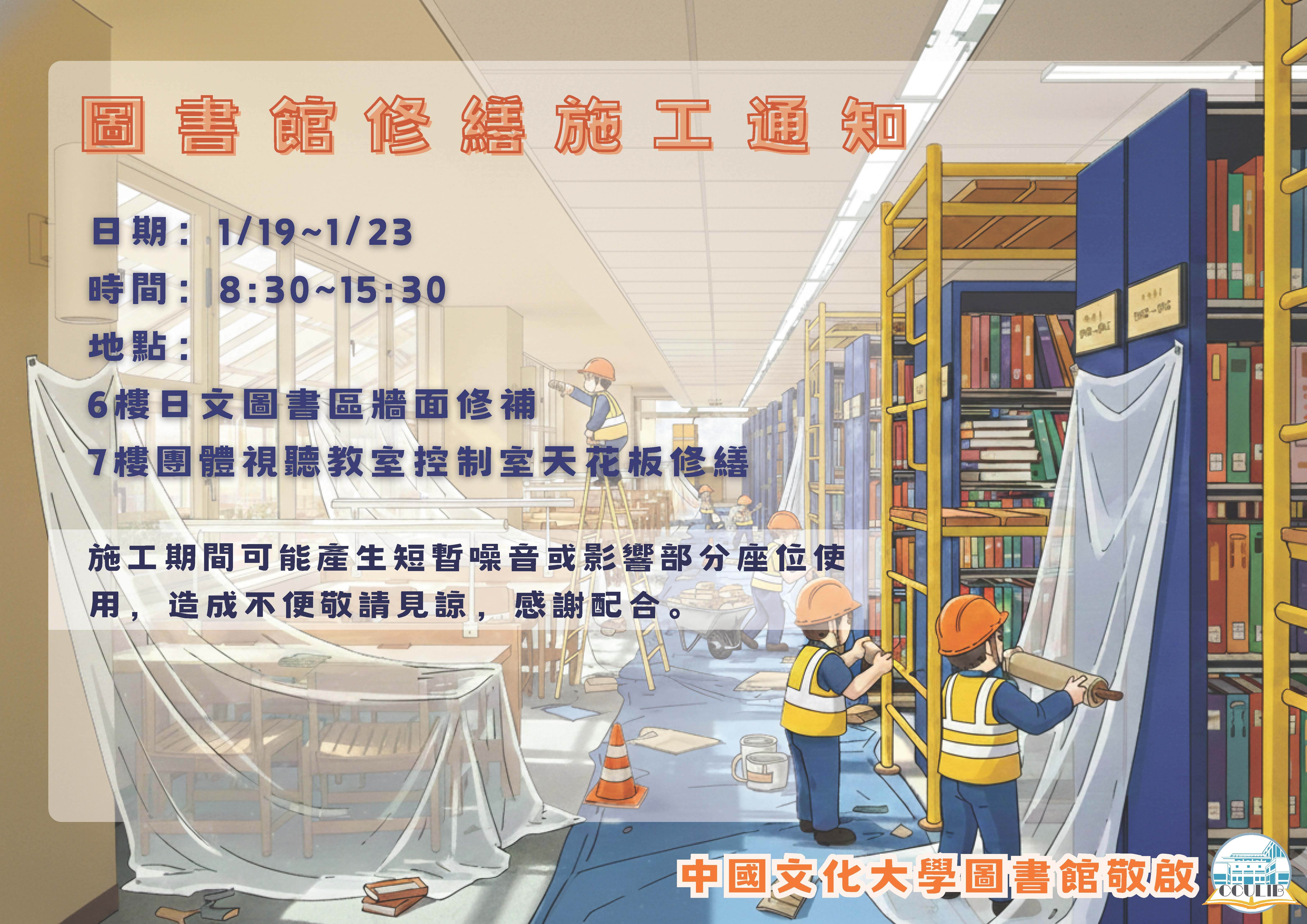 [公告] 圖書館修繕施工通知
