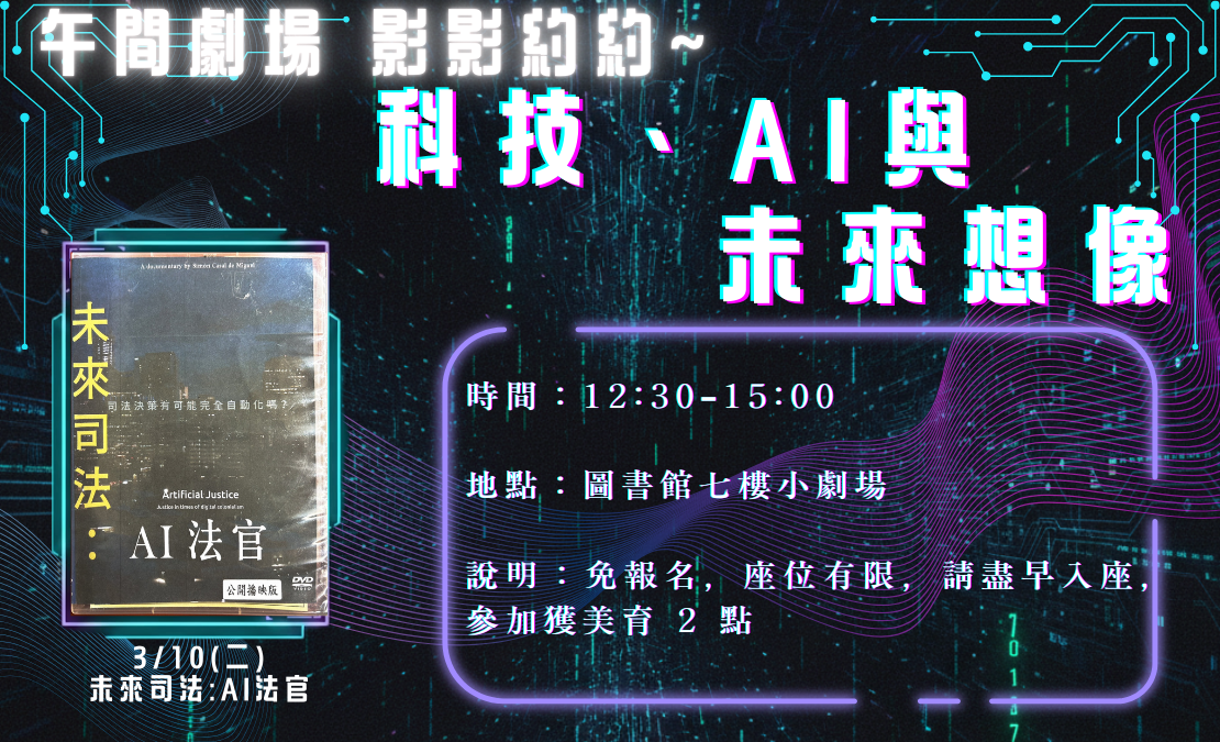 [活動] 03.10 午間劇場-影影約約 - 科技、AI 與未來想像「未來司法:AI 法官」