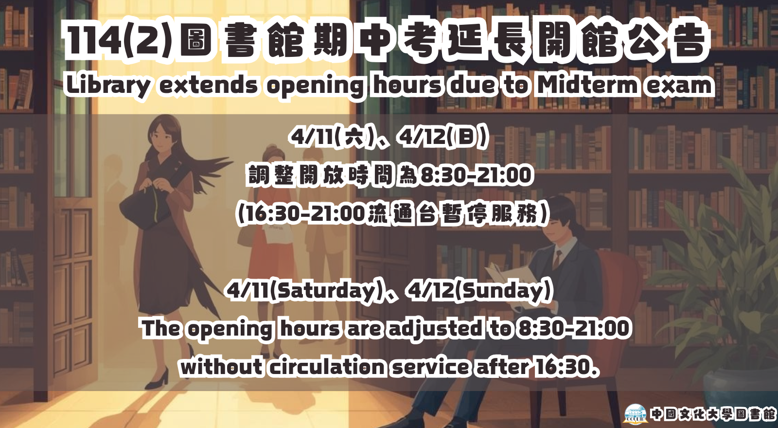 [公告] 114(2)期中考圖書館延長開館
